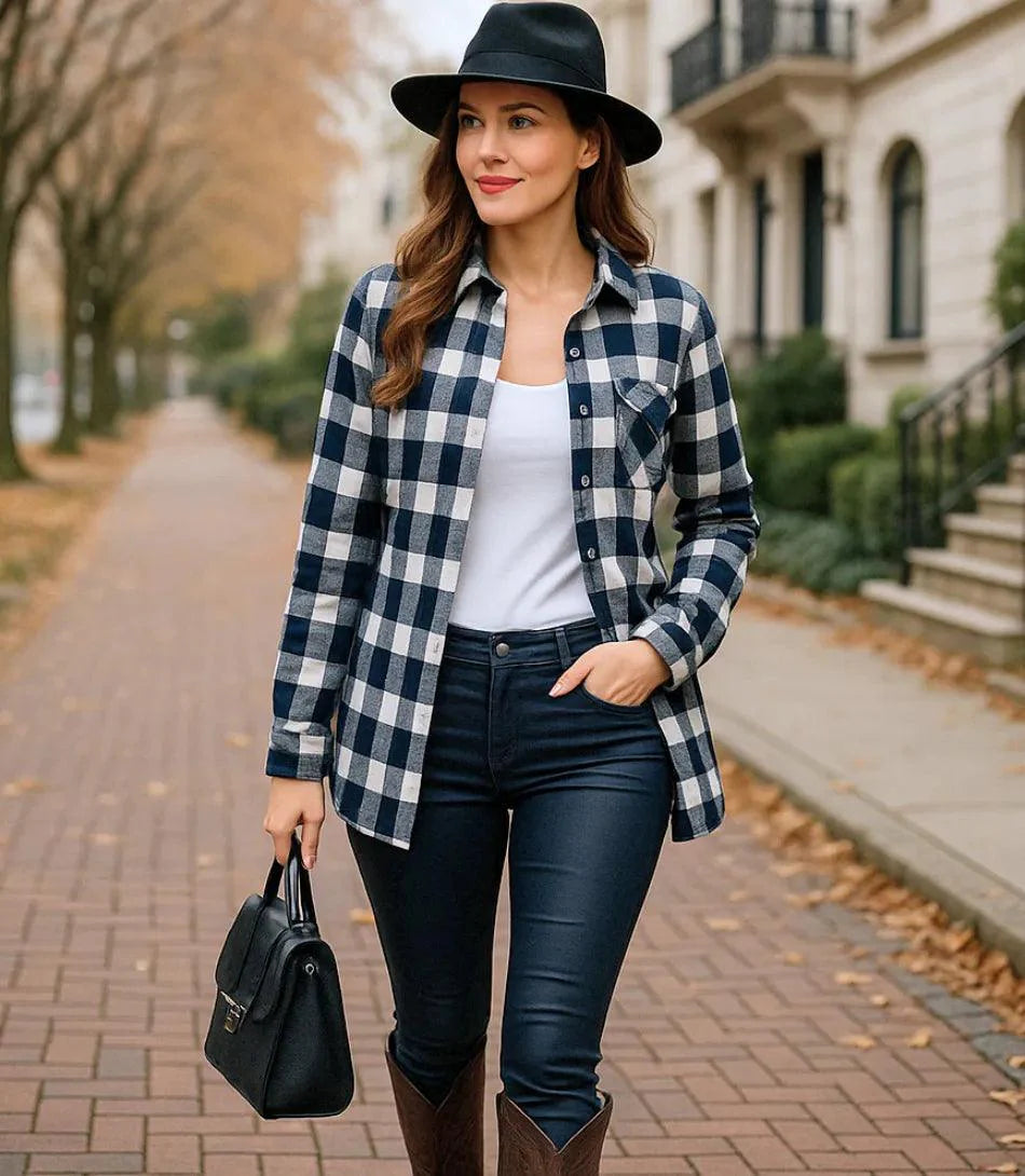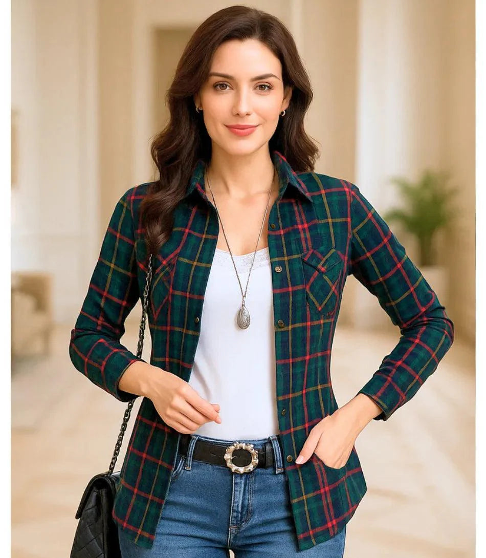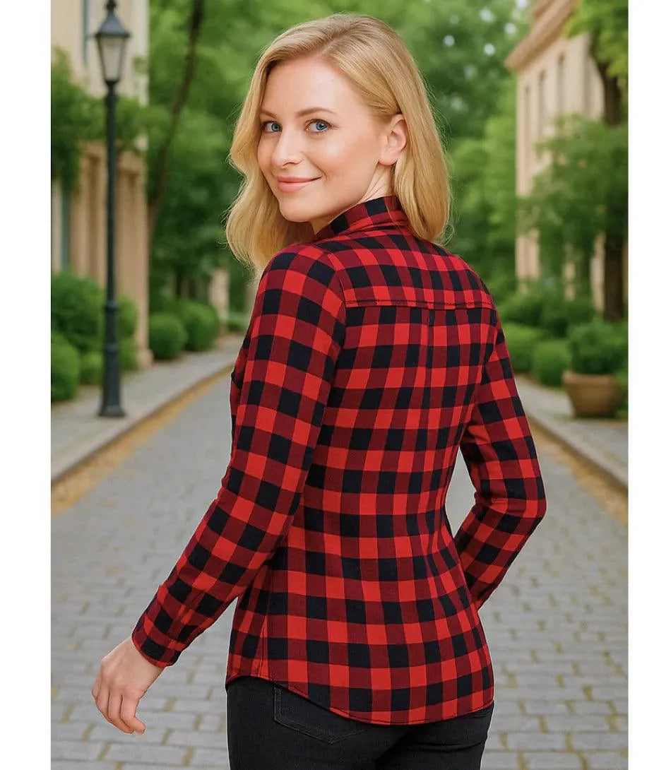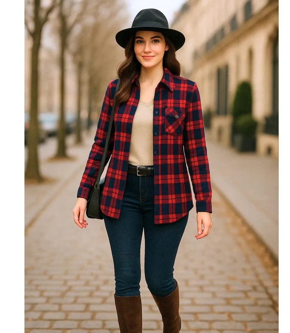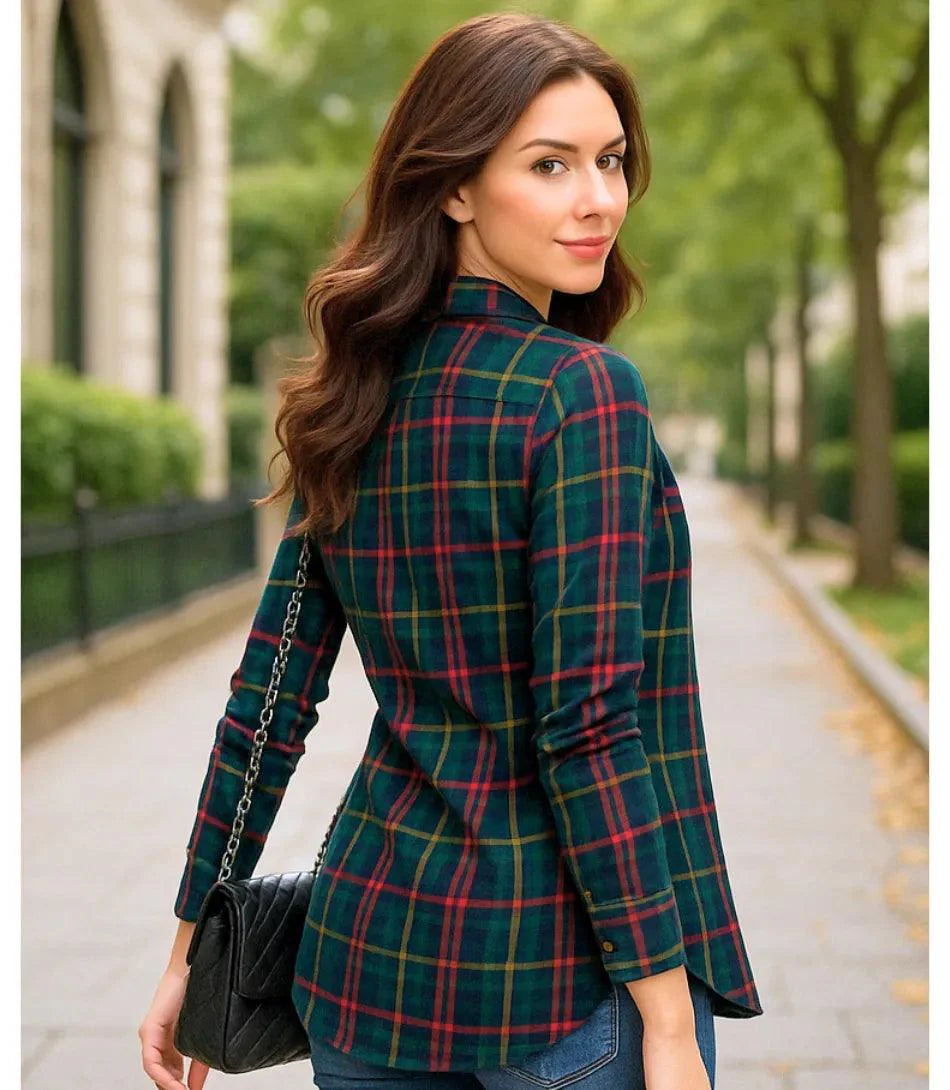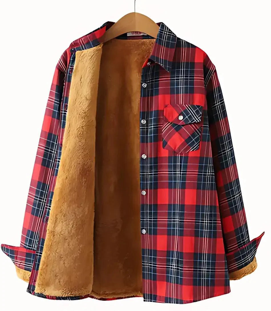 A camisa xadrez feminina flanelada com forro térmico peluciado transforma qualquer look em algo elegante e acolhedor.