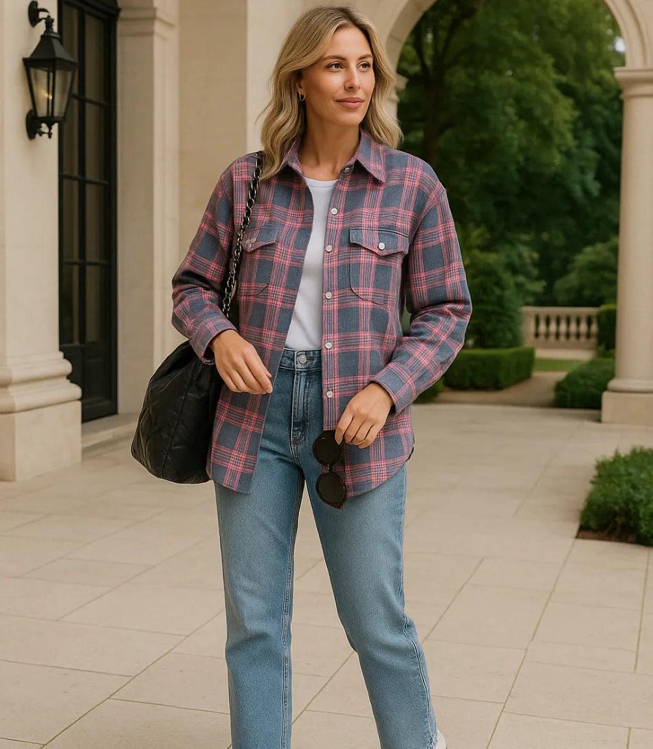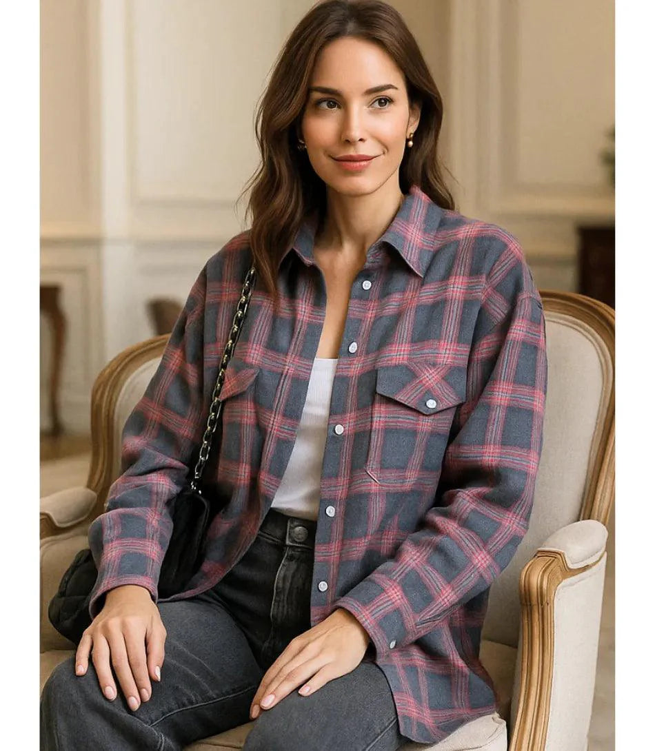 Camisa Xadrez Feminina Oversized em Flanela com Toque Moderno | Anabeaz